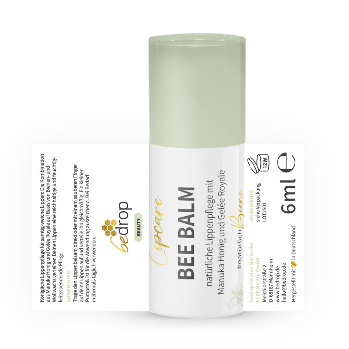 Royal lip balm for velvety soft lips: The combination of manuka honey and royal jelly based on beeswax and lanolin gives your lips rich and moisturizing care. Apply a small pump to your dry, chapped or dull lips and enjoy the velvety-soft feeling of lips with bee power!